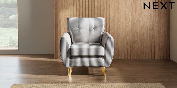 7.2.10 Buy Wilson Buttoned Back Armchair Chenille Stripe Slate Blue Metal Tapered - Gold from the Next UK online shop Click here to use our accessible website