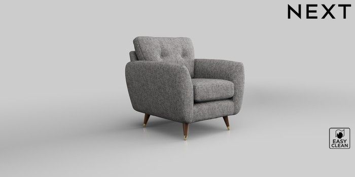 6.12.13 Buy Wilson Buttoned Back Armchair Chunky Boucle Easy Clean Light Grey Low Retro Tapered Metal Cap - Mid from the Next UK online shop Click here to use our accessible website