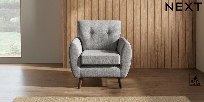 7.2.10 Buy Wilson Buttoned Back Armchair Chunky Boucle Easy Clean Light Grey Retro Tapered - Mid from the Next UK online shop Click here to use our accessible website