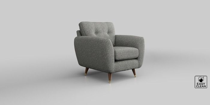 6.12.13 Buy Wilson Buttoned Back Armchair Chunky Boucle Easy Clean Mid Grey Low Retro Tapered Metal Cap - Mid from the Next UK online shop Click here to use our accessible website