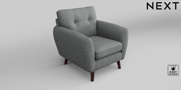6.12.1 Buy Wilson Buttoned Back Armchair Chunky Boucle Easy Clean Mid Grey Retro Tapered - Dark Brown from the Next UK online shop Click here to use our accessible website