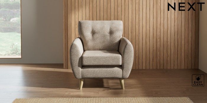 7.3.1 Buy Wilson Buttoned Back Armchair Chunky Boucle Easy Clean Mid Natural Retro Tapered - Light from the Next UK online shop Click here to use our accessible website