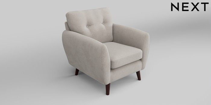 6.12.1 Buy Wilson Buttoned Back Armchair Chunky Chenille Oyster Retro Tapered - Dark Brown from the Next UK online shop Click here to use our accessible website