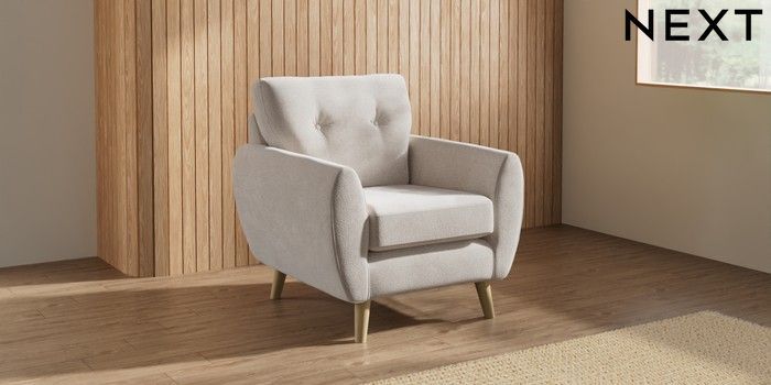 7.3.1 Buy Wilson Buttoned Back Armchair Chunky Chenille Oyster Retro Tapered - Light from the Next UK online shop