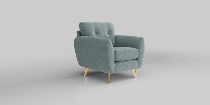 6.12.1 Buy Wilson Buttoned Back Armchair Chunky Marl Mid Blue Metal Tapered - Gold from the Next UK online shop Click here to use our accessible website
