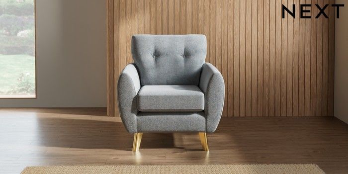 7.3.1 Buy Wilson Buttoned Back Armchair Chunky Marl Mid Grey Metal Tapered - Gold from the Next UK online shop Click here to use our accessible website