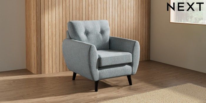 7.3.1 Buy Wilson Buttoned Back Armchair Chunky Weave Mid Blue Retro Tapered - Dark from the Next UK online shop