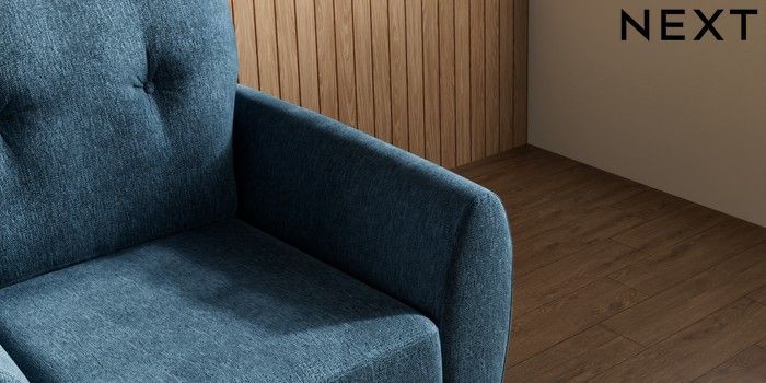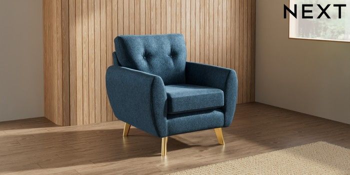 7.3.1 Buy Wilson Buttoned Back Armchair Cotswold Chenille Dark Blue Metal Tapered - Gold from the Next UK online shop Click here to use our accessible website