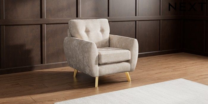 7.3.1 Buy Wilson Buttoned Back Armchair Distressed Velour Mid Natural Metal Tapered - Gold from the Next UK online shop Click here to use our accessible website