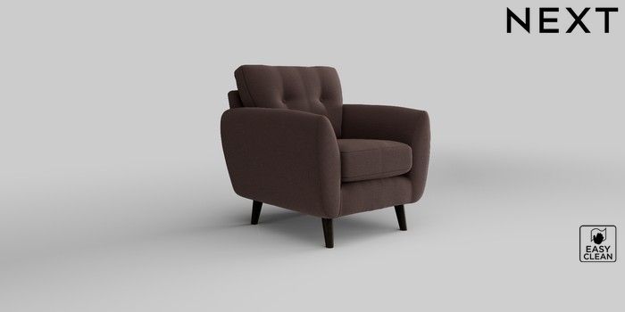 6.12.1 Buy Wilson Buttoned Back Armchair Fine Chenille Easy Clean Chocolate Brown Retro Tapered - Dark from the Next UK online shop Click here to use our accessible website