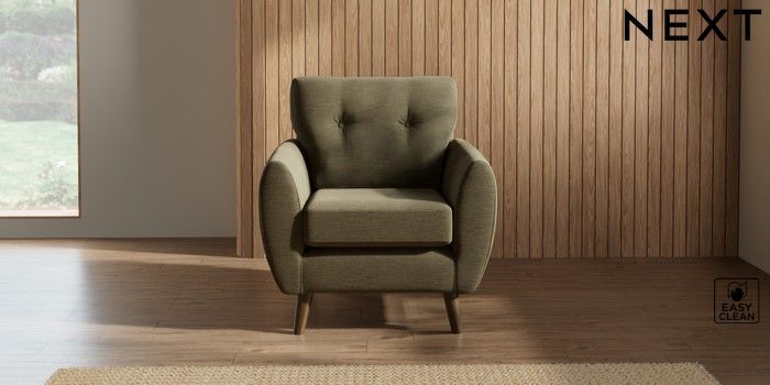 7.3.1 Buy Wilson Buttoned Back Armchair Fine Chenille Easy Clean Dark Moss Green Retro Tapered - Mid from the Next UK online shop Click here to use our accessible website