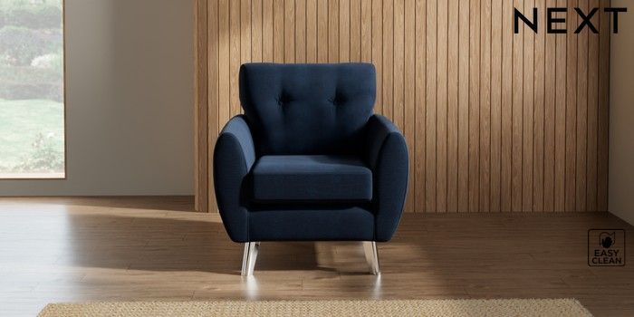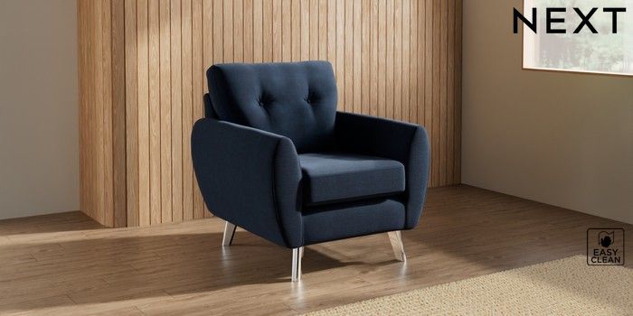 7.3.1 Buy Wilson Buttoned Back Armchair Fine Chenille Easy Clean Dark Navy Blue Metal Tapered - Chrome from the Next UK online shop Click here to use our accessible website