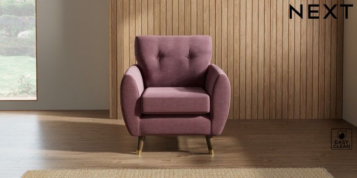 7.3.1 Buy Wilson Buttoned Back Armchair Fine Chenille Easy Clean Mid Mulberry Purple Low Retro Tapered Metal Cap - Mid from the Next UK online shop Click here to use our accessible website