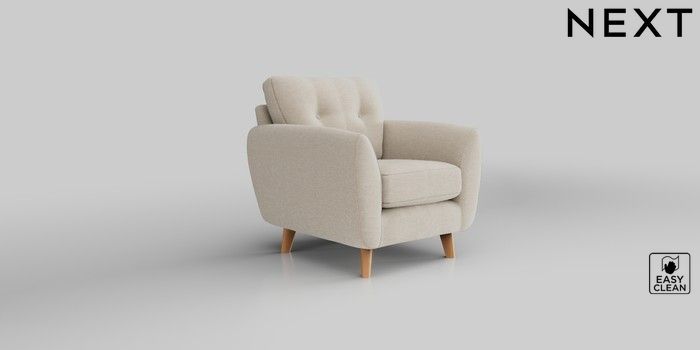 6.12.13 Buy Wilson Buttoned Back Armchair Fine Chenille Easy Clean Oyster Retro Tapered - Light from the Next UK online shop Click here to use our accessible website
