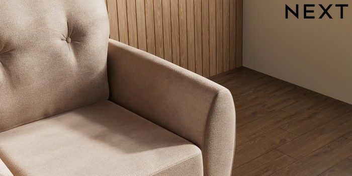 7.3.1 Buy Wilson Buttoned Back Armchair Luxe Chenille Mid Natural Metal Tapered - Gold from the Next UK online shop Click here to use our accessible website