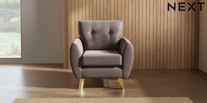 7.3.1 Buy Wilson Buttoned Back Armchair Luxe Chenille Mink Brown Metal Tapered - Gold from the Next UK online shop Click here to use our accessible website
