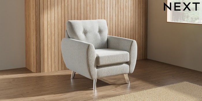 7.3.1 Buy Wilson Buttoned Back Armchair Multi Weave Light Blue Metal Tapered - Chrome from the Next UK online shop
