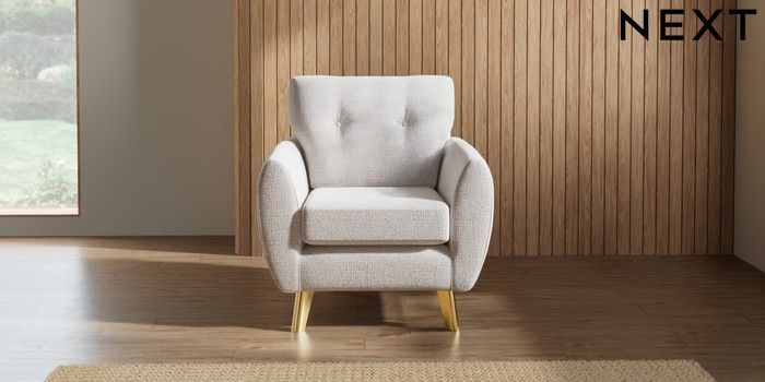 7.2.6 Buy Wilson Buttoned Back Armchair Multi Weave Oyster Metal Tapered - Gold from the Next UK online shop Click here to use our accessible website