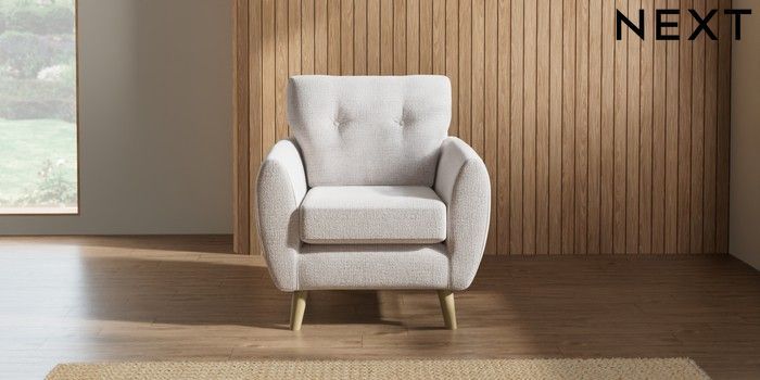 7.2.6 Buy Wilson Buttoned Back Armchair Multi Weave Oyster Retro Tapered - Light from the Next UK online shop Click here to use our accessible website