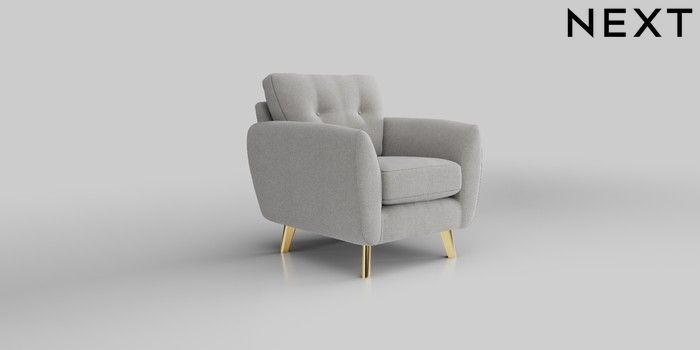 6.12.1 Buy Wilson Buttoned Back Armchair Natural Mix Light Grey Metal Tapered - Gold from the Next UK online shop Click here to use our accessible website