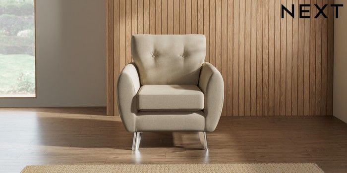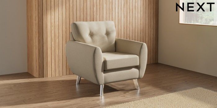 7.3.1 Buy Wilson Buttoned Back Armchair Natural Mix Light Natural Metal Tapered - Chrome from the Next UK online shop Click here to use our accessible website