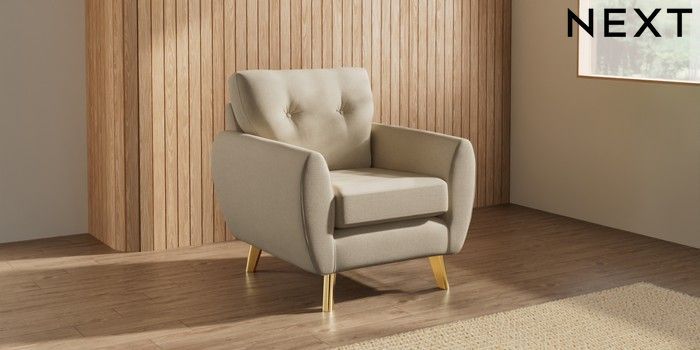 7.3.1 Buy Wilson Buttoned Back Armchair Natural Mix Light Natural Metal Tapered - Gold from the Next UK online shop Click here to use our accessible website