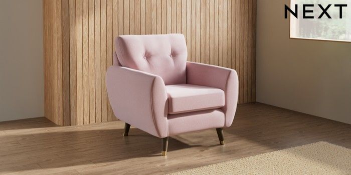 7.3.1 Buy Wilson Buttoned Back Armchair Natural Mix Light Rose Pink Low Retro Tapered Metal Cap - Mid from the Next UK online shop Click here to use our accessible website