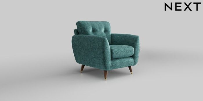6.12.13 Buy Wilson Buttoned Back Armchair Plush Chenille Dark Teal Green Low Retro Tapered Metal Cap - Mid from the Next UK online shop Click here to use our accessible website