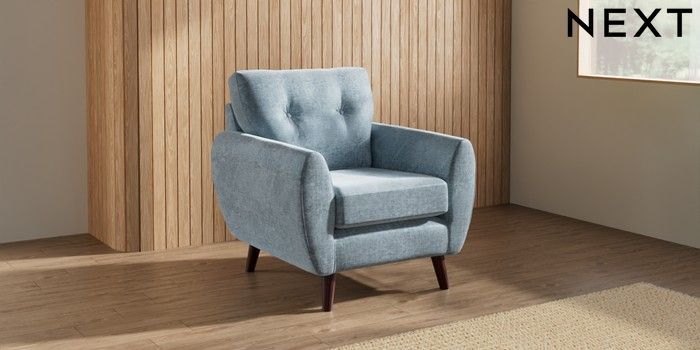 7.3.1 Buy Wilson Buttoned Back Armchair Plush Chenille Light Blue Retro Tapered - Dark Brown from the Next UK online shop