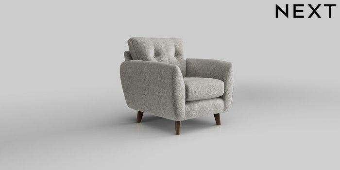 6.12.1 Buy Wilson Buttoned Back Armchair Plush Chenille Light Grey Retro Tapered - Mid from the Next UK online shop Click here to use our accessible website