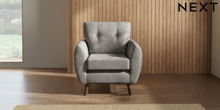 7.2.10 Buy Wilson Buttoned Back Armchair Plush Chenille Light Grey Retro Tapered - Mid from the Next UK online shop Click here to use our accessible website