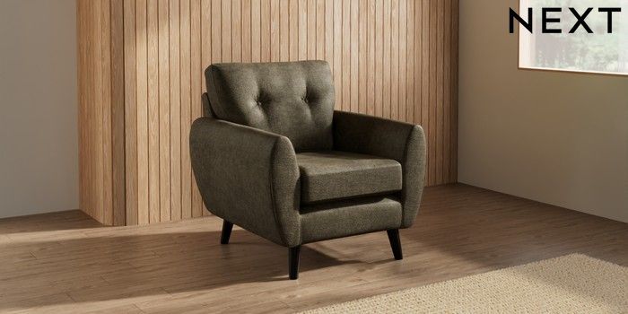 7.3.1 Buy Wilson Buttoned Back Armchair Plush Chenille Moss Green Retro Tapered - Dark from the Next UK online shop Click here to use our accessible website