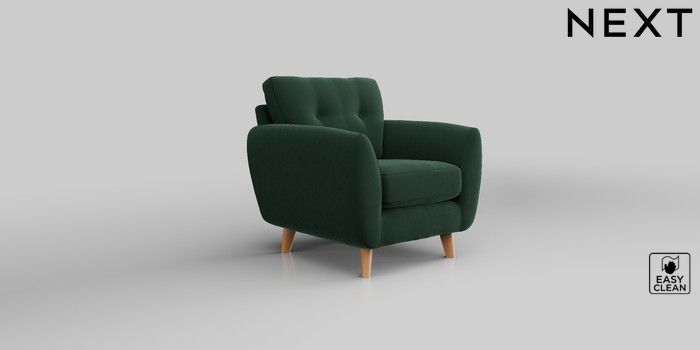 6.12.13 Buy Wilson Buttoned Back Armchair Plush Velvet Easy Clean Bottle Green Retro Tapered - Light from the Next UK online shop Click here to use our accessible website