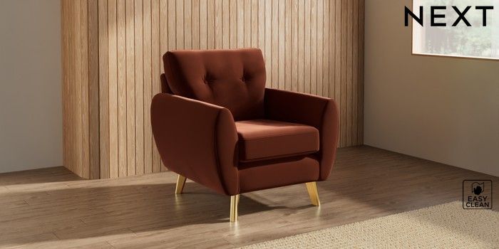 7.3.1 Buy Wilson Buttoned Back Armchair Plush Velvet Easy Clean Ginger Orange Metal Tapered - Gold from the Next UK online shop Click here to use our accessible website