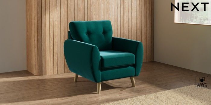 7.3.1 Buy Wilson Buttoned Back Armchair Plush Velvet Easy Clean Juniper Green Retro Tapered - Light from the Next UK online shop Click here to use our accessible website
