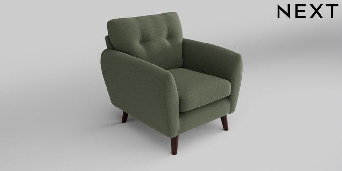 6.12.1 Buy Wilson Buttoned Back Armchair Relaxed Linen Look Dark Green Retro Tapered - Dark Brown from the Next UK online shop Click here to use our accessible website