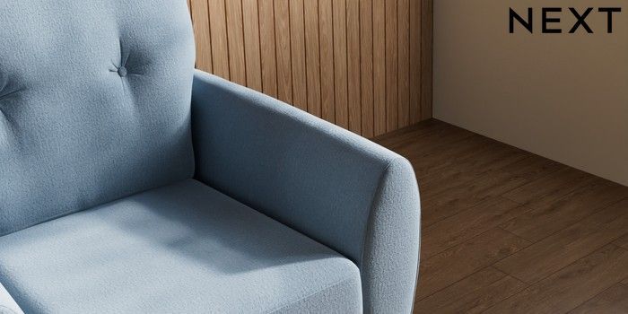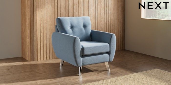 7.3.1 Buy Wilson Buttoned Back Armchair Relaxed Linen Look Mid Blue Metal Tapered - Chrome from the Next UK online shop Click here to use our accessible website