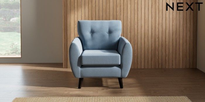 7.3.1 Buy Wilson Buttoned Back Armchair Relaxed Linen Look Mid Blue Retro Tapered - Dark from the Next UK online shop Click here to use our accessible website