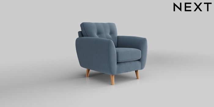 6.12.1 Buy Wilson Buttoned Back Armchair Relaxed Linen Look Mid Blue Retro Tapered - Light from the Next UK online shop Click here to use our accessible website