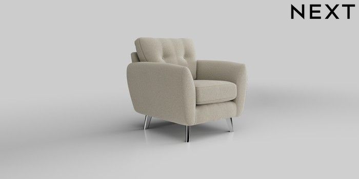 6.12.1 Buy Wilson Buttoned Back Armchair Ripple Chenille Light Natural Metal Tapered - Chrome from the Next UK online shop Click here to use our accessible website