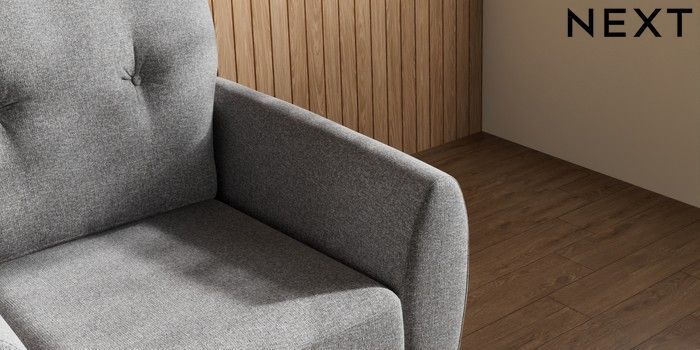 7.3.1 Buy Wilson Buttoned Back Armchair Studio Chenille Mid Grey Low Retro Tapered Metal Cap - Mid from the Next UK online shop