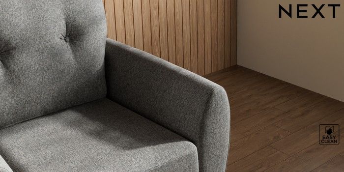 7.3.1 Buy Wilson Buttoned Back Armchair Tweedy Blend Easy Clean Dark Grey Low Retro Tapered Metal Cap - Mid from the Next UK online shop Click here to use our accessible website