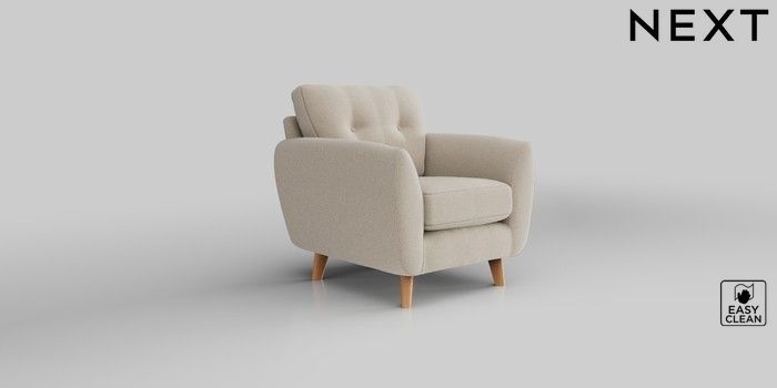 6.12.1 Buy Wilson Buttoned Back Armchair Tweedy Blend Easy Clean Oyster Retro Tapered - Light from the Next UK online shop Click here to use our accessible website