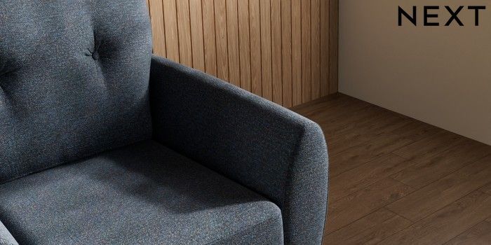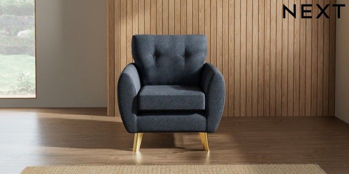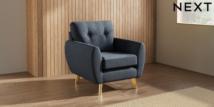 7.3.1 Buy Wilson Buttoned Back Armchair Tweedy Chenille Navy Blue Metal Tapered - Gold from the Next UK online shop Click here to use our accessible website