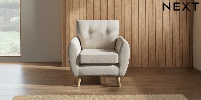 7.3.1 Buy Wilson Buttoned Back Armchair Tweedy Chenille Oyster Retro Tapered - Light from the Next UK online shop Click here to use our accessible website