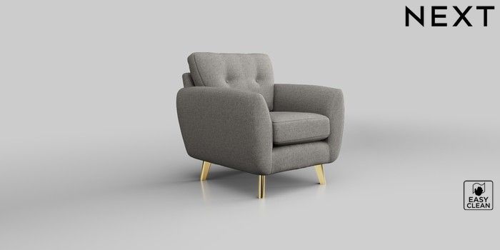 6.12.1 Buy Wilson Buttoned Back Armchair Woven Chenille Easy Clean Light Grey Metal Tapered - Gold from the Next UK online shop Click here to use our accessible website