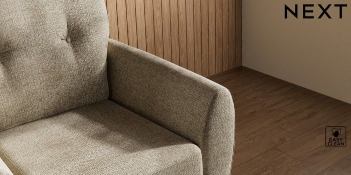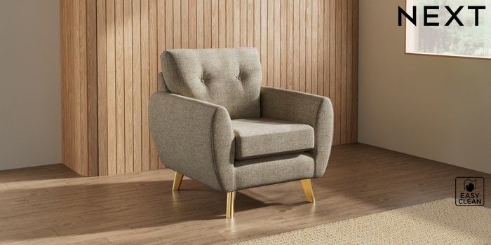 7.3.1 Buy Wilson Buttoned Back Armchair Woven Chenille Easy Clean Mid Natural Metal Tapered - Gold from the Next UK online shop Click here to use our accessible website
