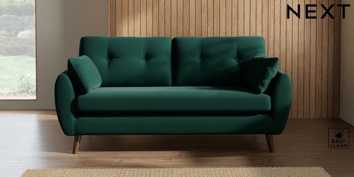 7.3.1 Buy Wilson Buttoned Back 3 Seater Small Sofa Plush Velvet Easy Clean Bottle Green Retro Tapered - Mid from the Next UK online shop Click here to use our accessible website