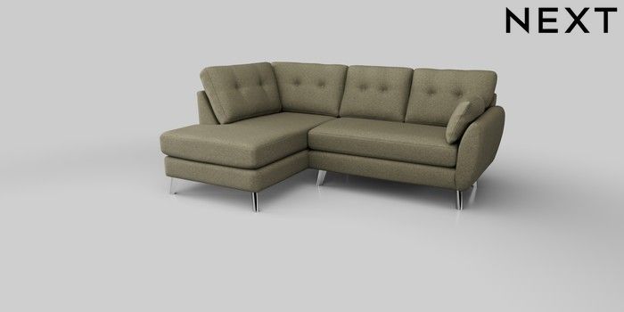 6.12.1 Buy Wilson Buttoned Back Medium Corner Chaise - Left Hand Tweedy Chenille Mid Moss Green Metal Tapered - Chrome from the Next UK online shop Click here to use our accessible website