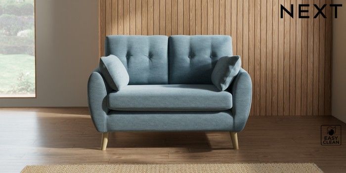 7.2.10 Buy Wilson Buttoned Back 2 Seater Small Sofa Fine Chenille Easy Clean Mid Blue Retro Tapered - Light from the Next UK online shop Click here to use our accessible website